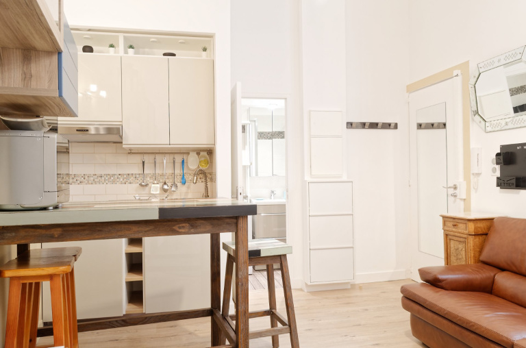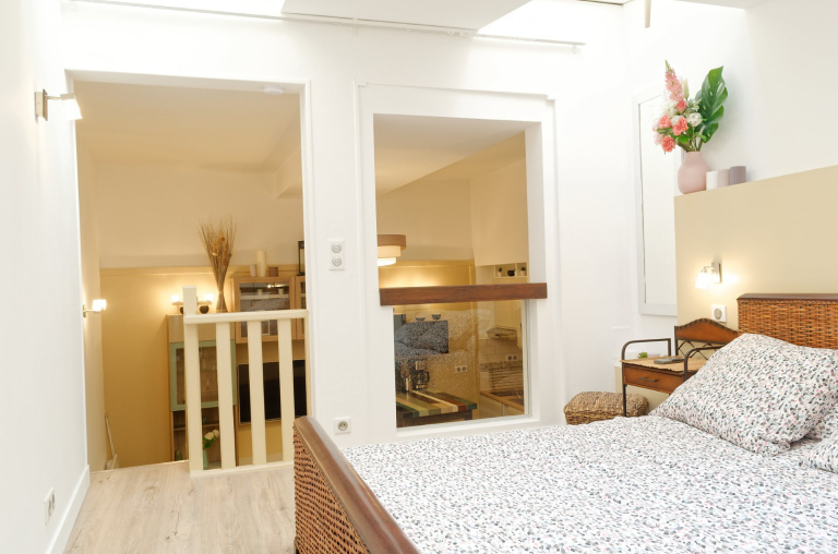 Au 1er étage sans ascenseur cet appartement propose des prestations de grande qualité et est composé d'une pièce à vivre, d'un coin nuit en mezzanine, d'une cuisine équipée et une salle d'eau avec WC.