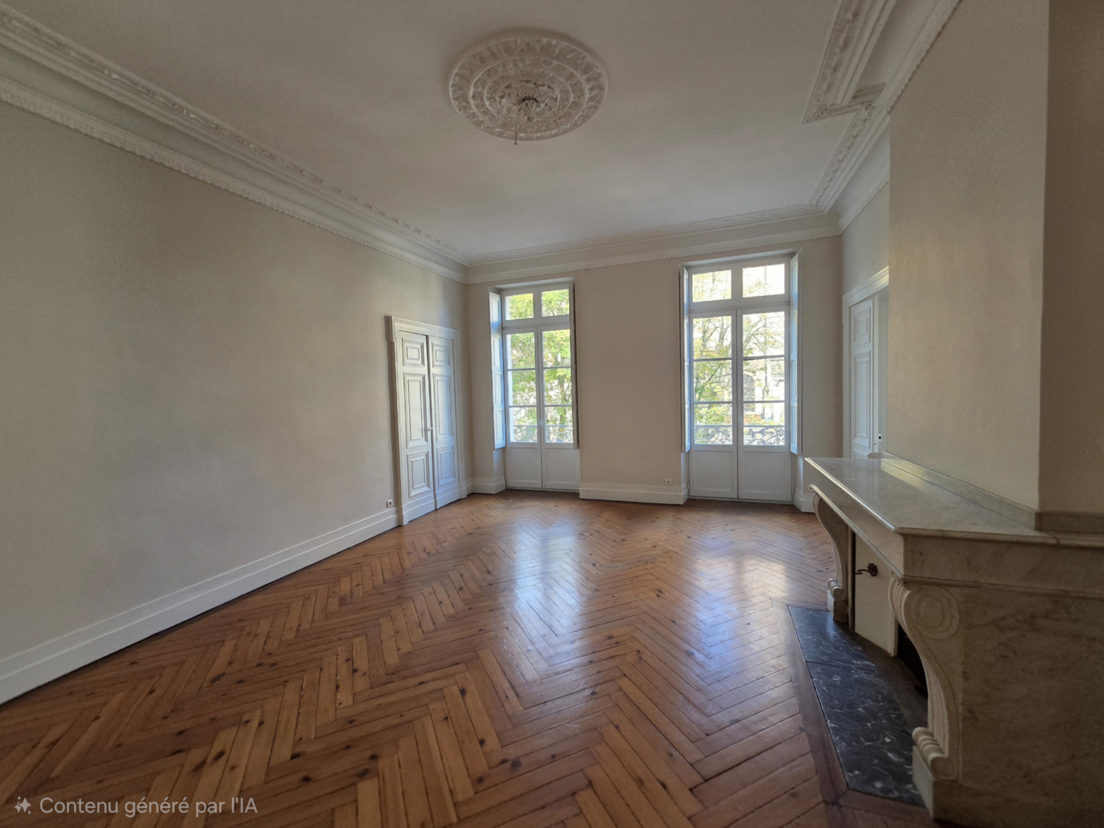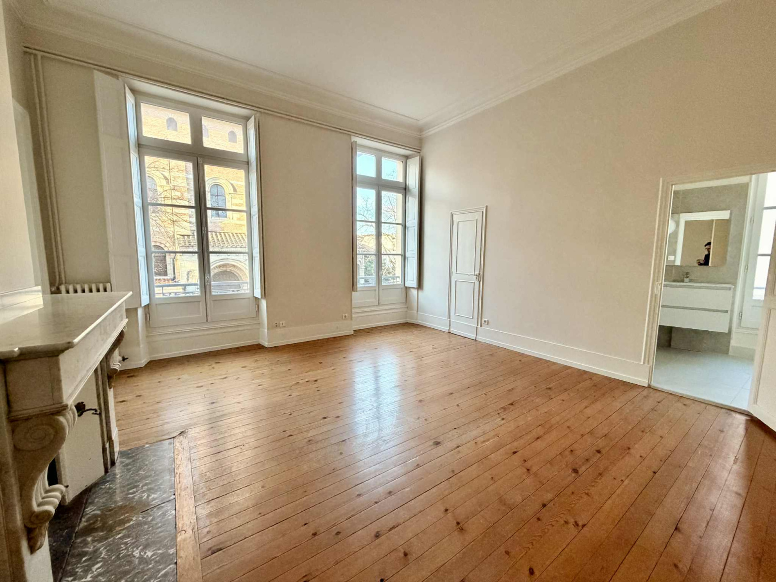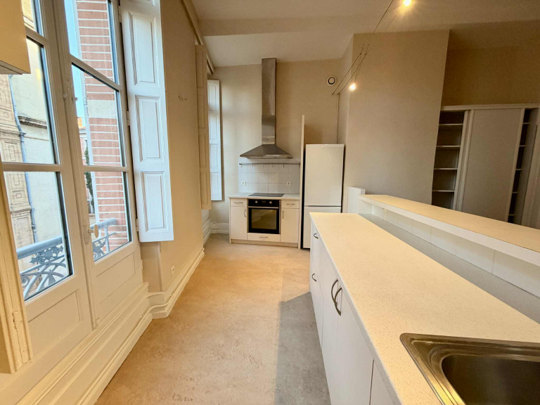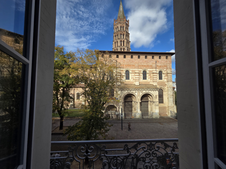 D’une superficie de 156m², il s’organise autour d’une entrée desservant un salon lumineux de 32 m² ainsi qu’une salle à manger de 25 m², tous deux offrant une vue directe et imprenable sur la Basilique Saint-Sernin.