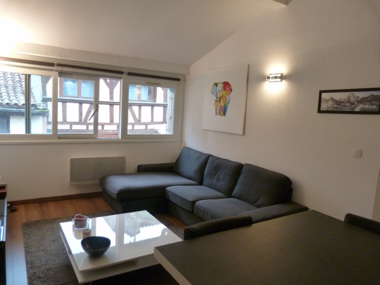 Toulouse hyper centre (28, rue Peyrolières), proche des transports en commun, des commerces et de la Garonne.