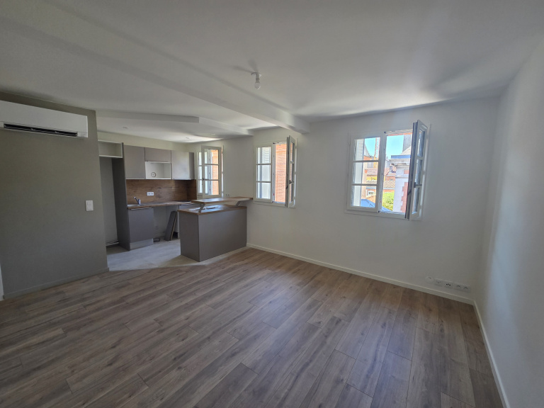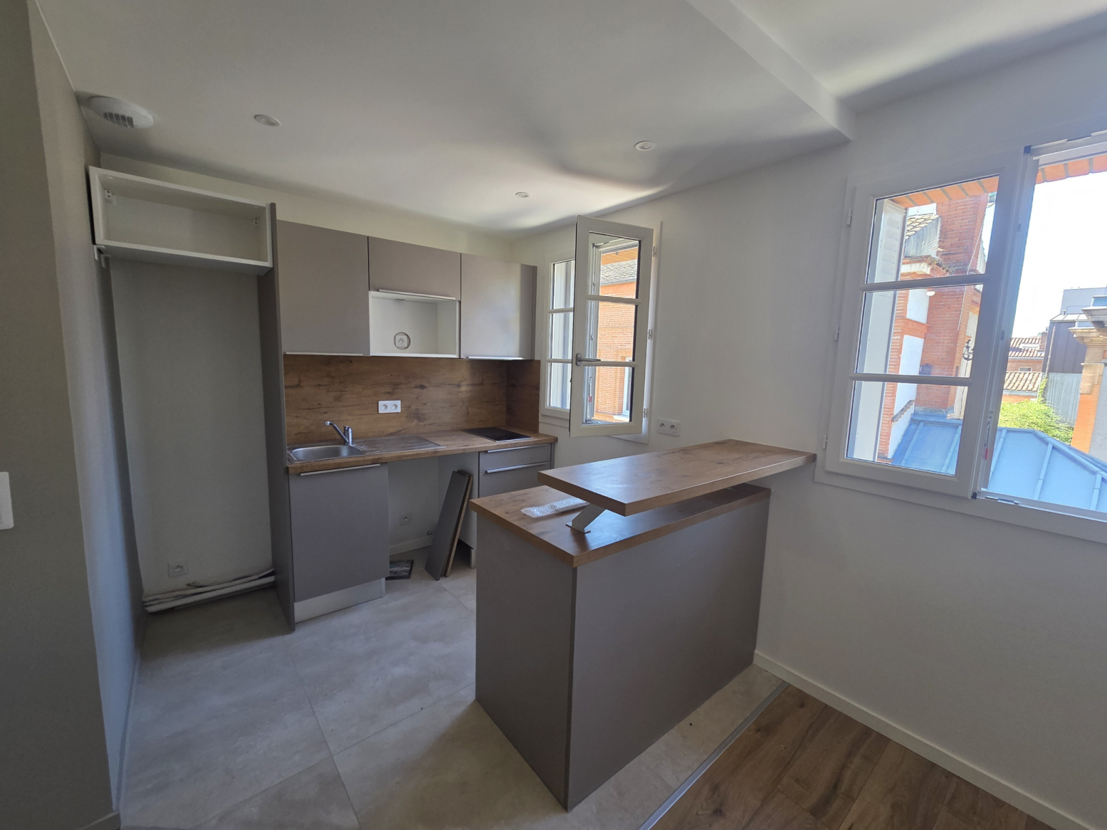 Toulouse secteur Dupuy/François Verdier (rue des Vases), à louer un appartement T1bis de 35.73 m² situé au 2éme étage d'une petite copropriété sans ascenseur. Il se compose d'une entrée, un séjour avec cuisine ouverte, une salle d'eau et un coin nuit avec placard.