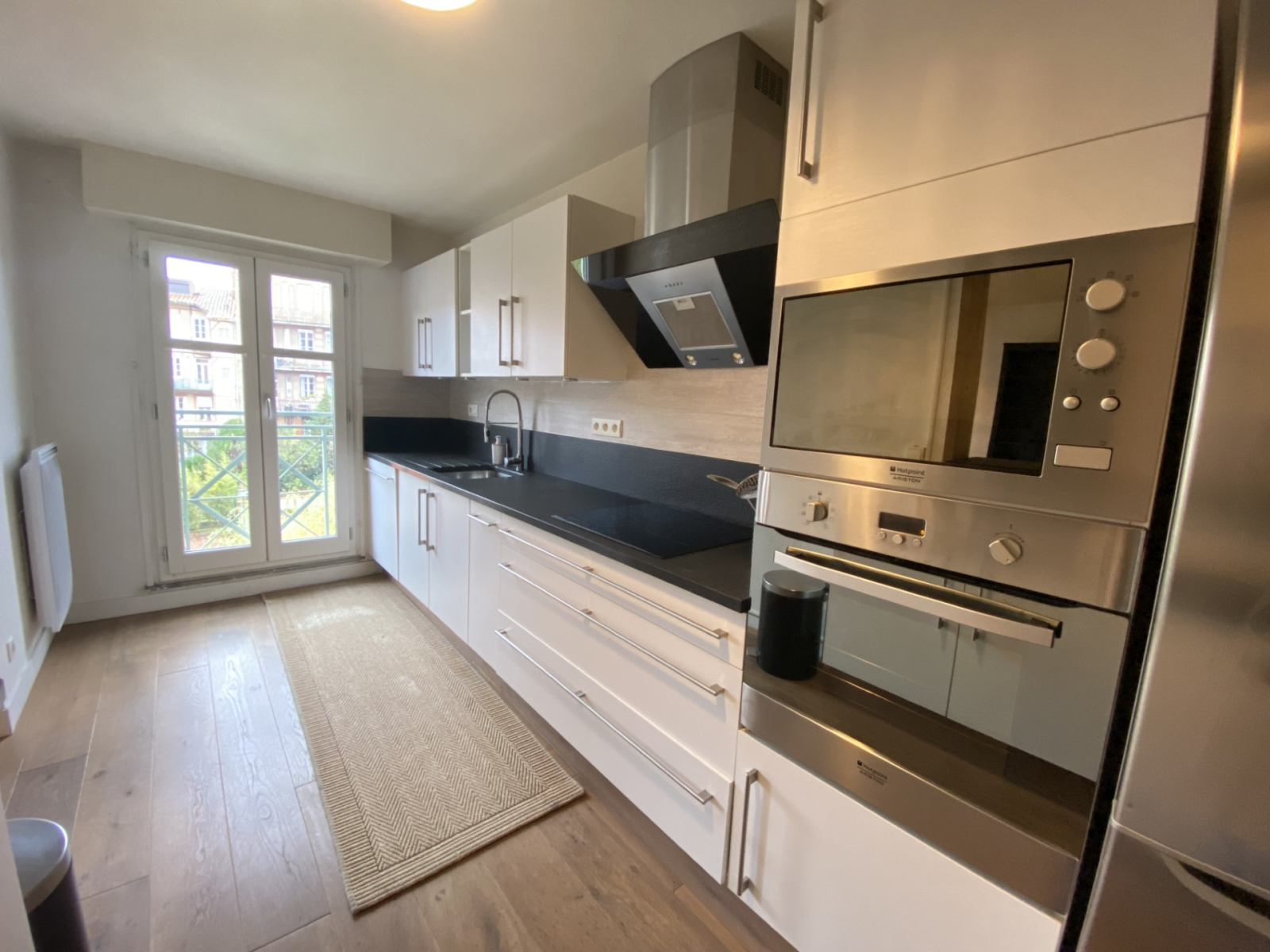 Toulouse secteur Carmes (17 rue des Couteliers), à louer dans une résidence de standing un appartement T3 meublé de 77 m². L'appartement est composé d'une entrée, une pièce à vivre, une cuisine indépendante équipée, deux chambres, une salle d'eau et un W.C indépendant.