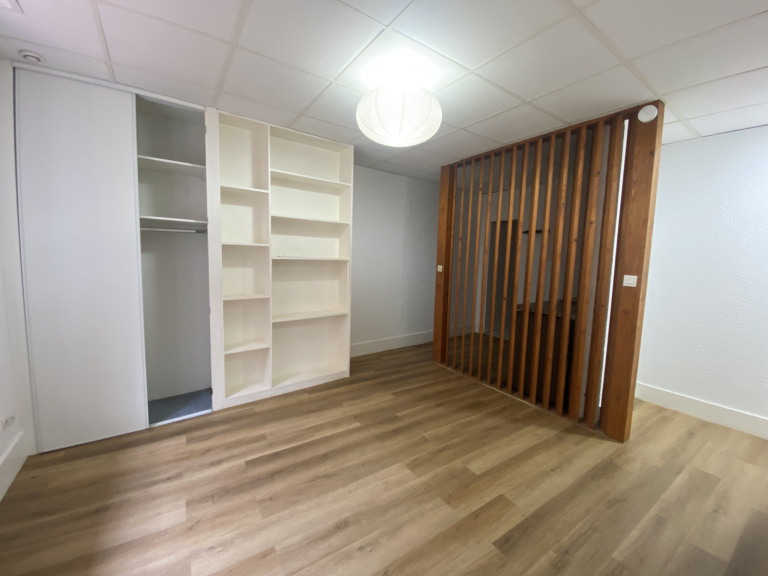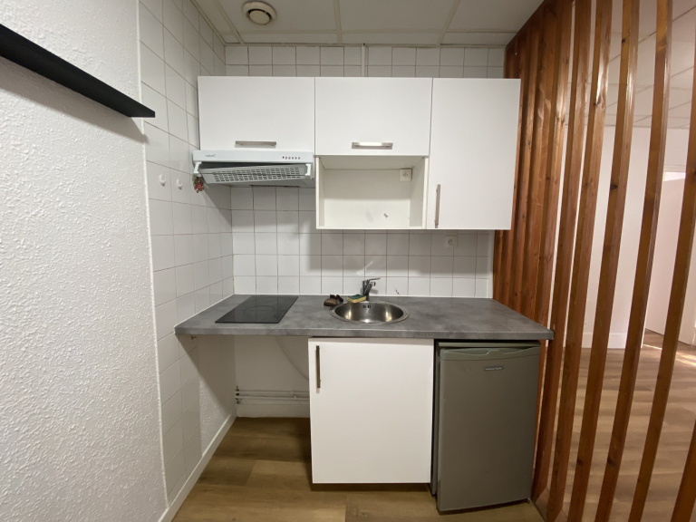 Toulouse, secteur Compans Caffarelli (3 rue Lascrosses), proche des facultés et des transports, dans une résidence sécurisée à louer joli appartement T2 rénové de 31m². L'appartement est situé au rez-de-chaussée sur cour, au calme, et est composé d'une entrée avec placard, un séjour avec bibliothèque et placard, une cuisine équipée semi-ouverte sur le séjour, une chambre indépendante et une salle de bains avec W.C.