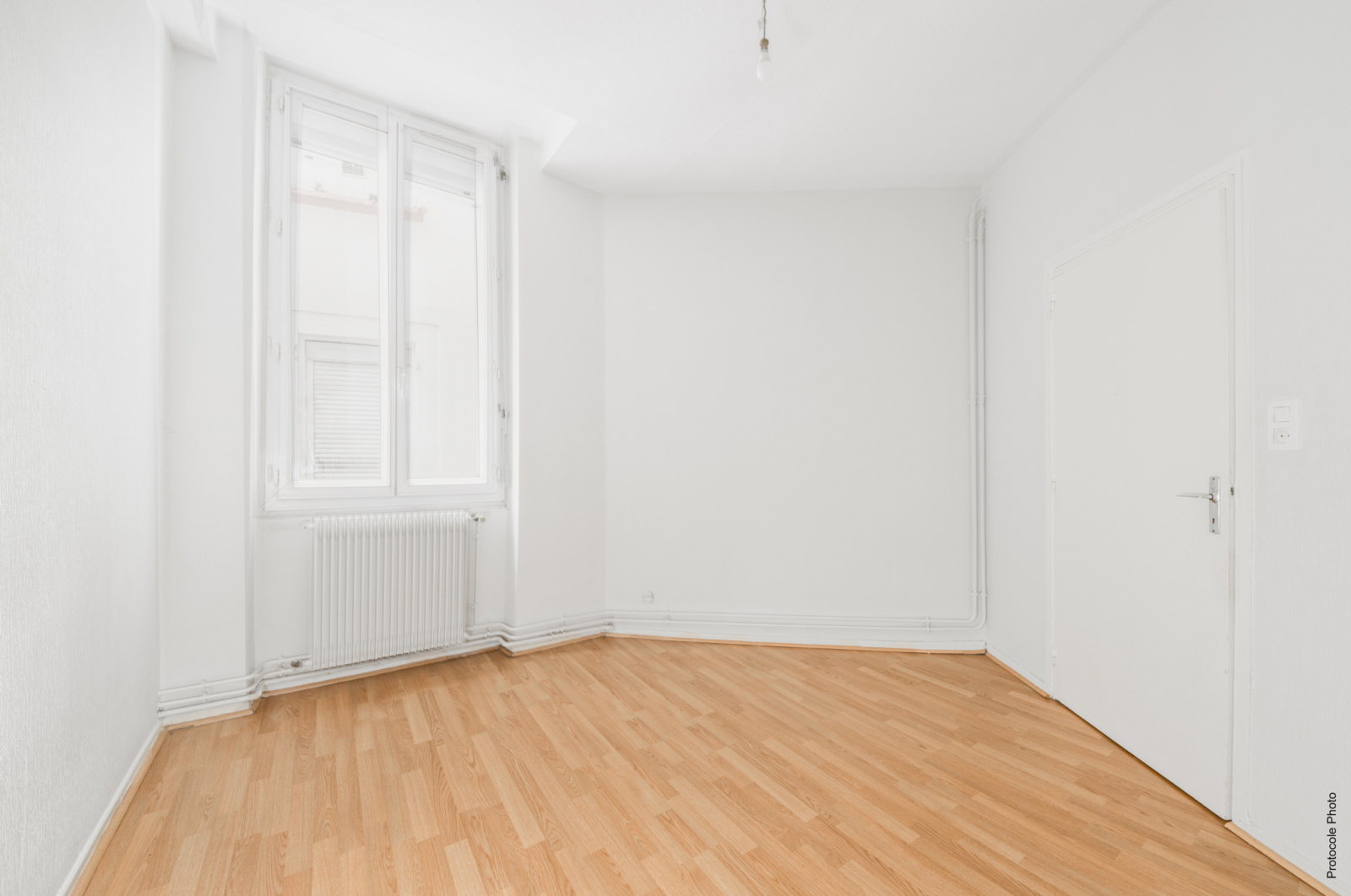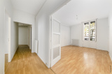 L’appartement offre une belle pièce de vie lumineuse de 18 m², une cuisine indépendante, une salle de bain, ainsi que deux chambres au calme, donnant sur cour (7,5 m² et 10 m²).