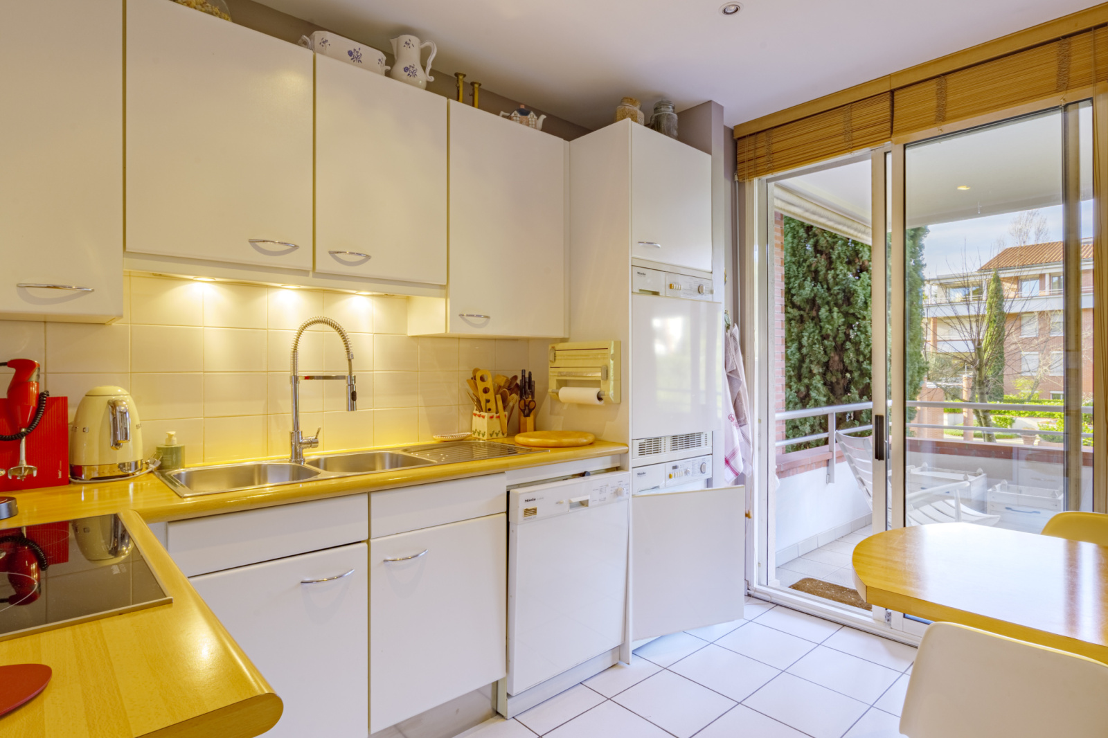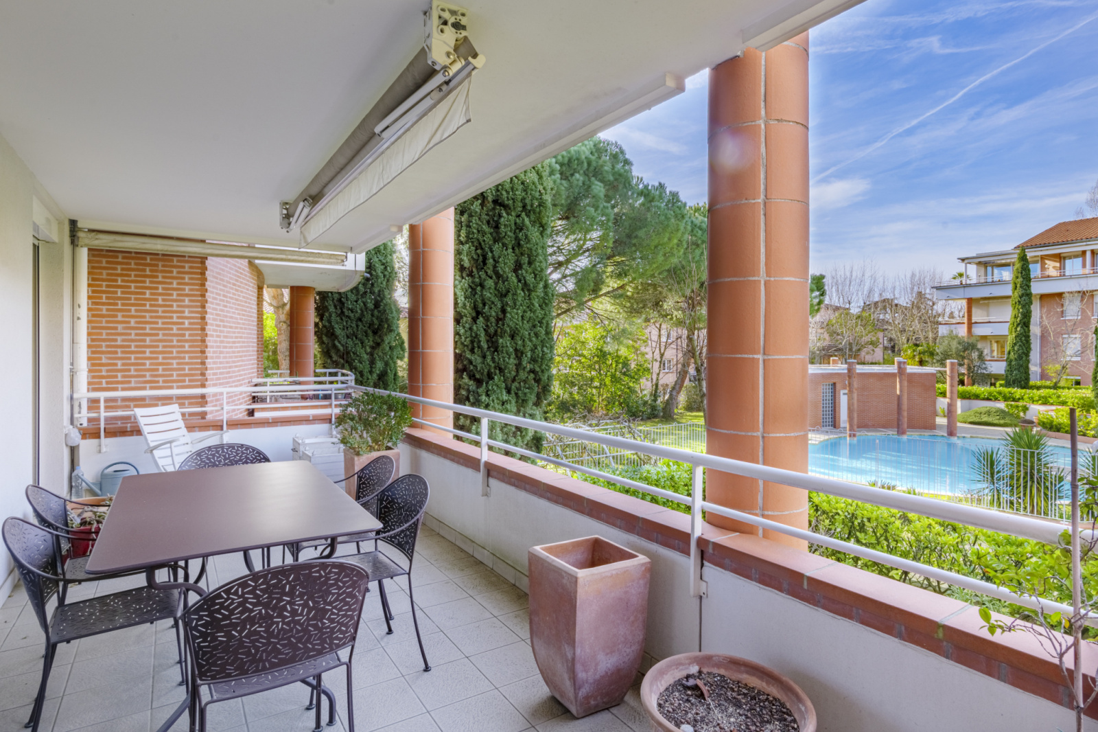 Il bénéficie en plus de sa terrasse, d’un balcon de 5,6 m², ainsi que d’un double garage boxé de 38,3 m².
