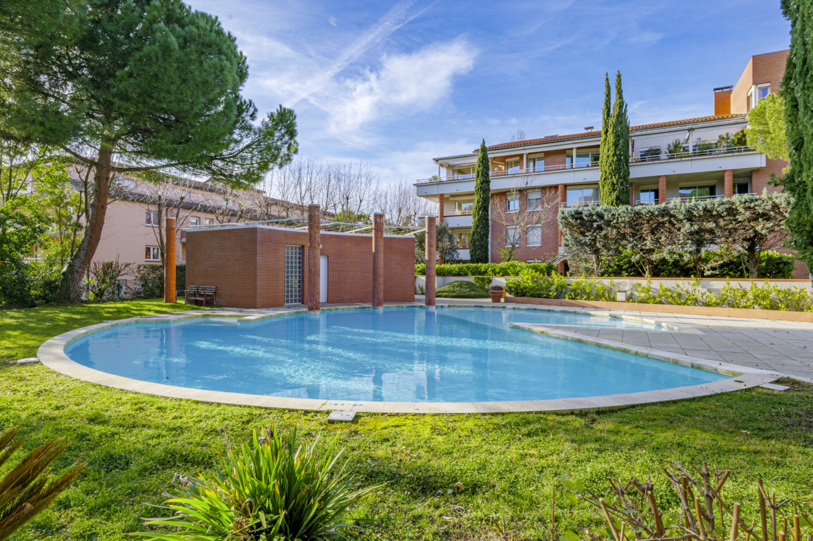 La résidence propose également une piscine collective dans le jardin arboré.