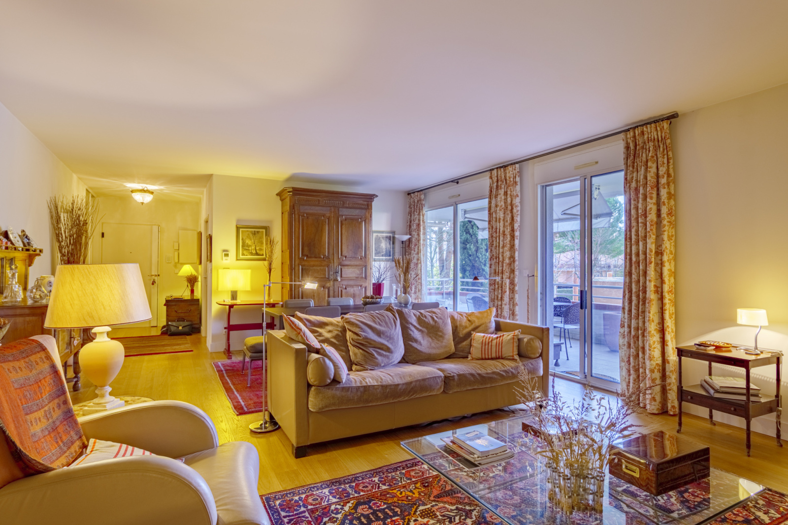 La partie jour se compose d’un séjour lumineux de 36 m² et d’une cuisine indépendante de 10 m², offrant de beaux espaces de réception s'ouvrant tout les deux sur une grande terrasse de 22 m².