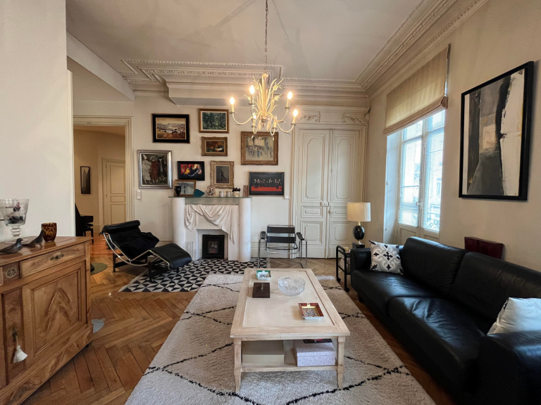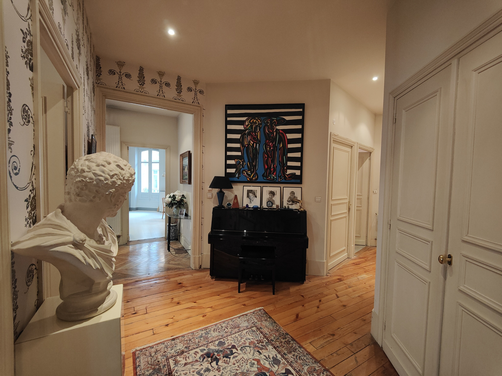 L'appartement possède de belles prestations notament la partie réception avec un parquet en pointe de hongrie, deux cheminées, des moulures au plafond et des portes ouvragées. Le chauffage et l'eau chaude sont au gaz de ville, et les huisseries en survitrage. Des travaux de rafraichissement sont à prévoir.